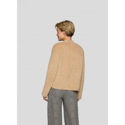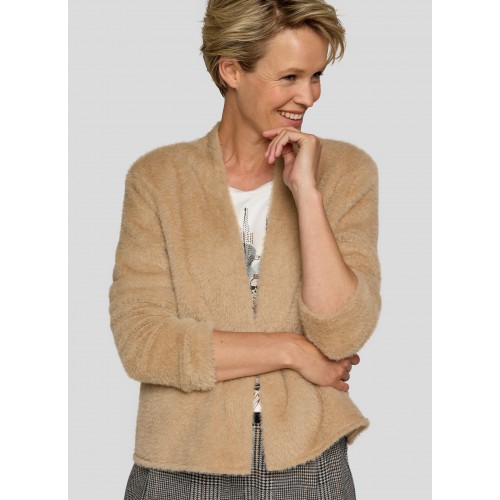 Rabe - 55-221223 col. 5632 - Zachte fluffy beige gilet met lange mouwen en centrale sluitingen een haakje.